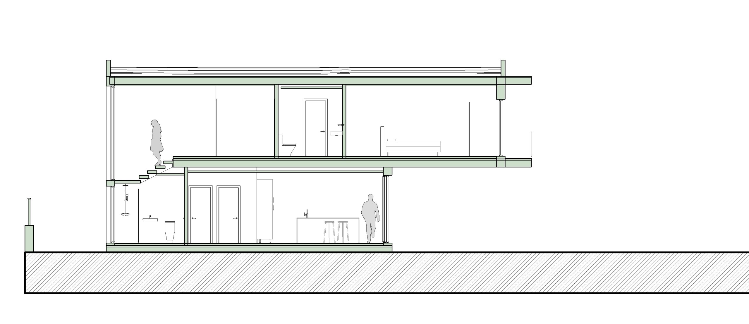 Esta aproximación se enfatiza con el uso del voladizo del prisma superior, generando un espacio de refugio en planta baja, y difuminando los límites entre interior y exterior.