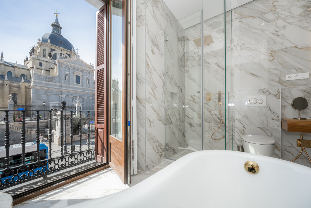 Ubicada en el centro de Madrid, esta reforma explota al máximo las increíbles vistas de varios monumentos emblemáticos, cuidando la exclusividad y el detalle.